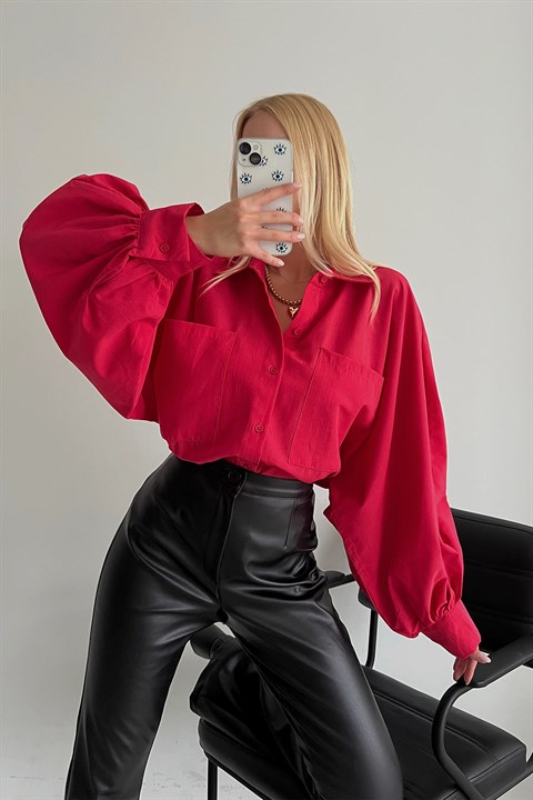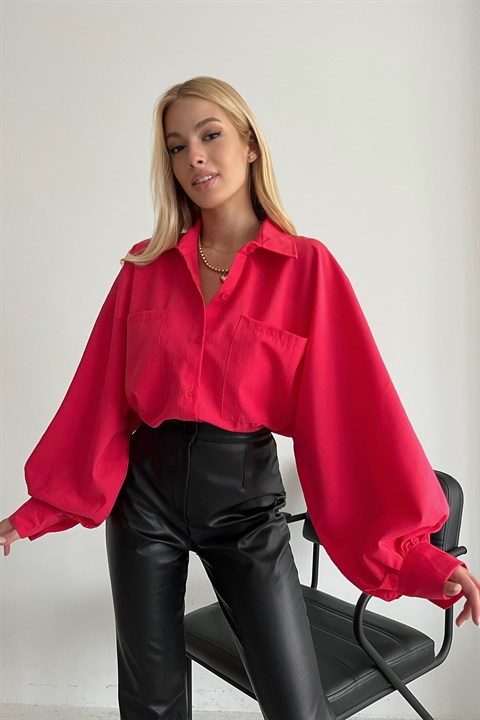 Balon Kol Poplin Kumaş Pembe Gömlek