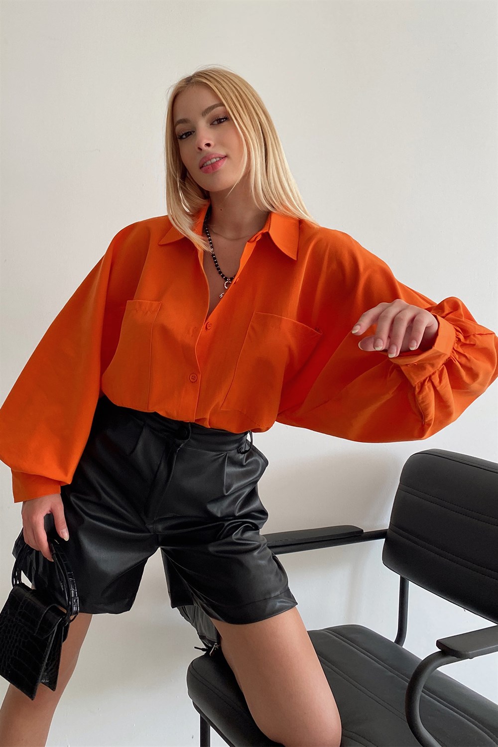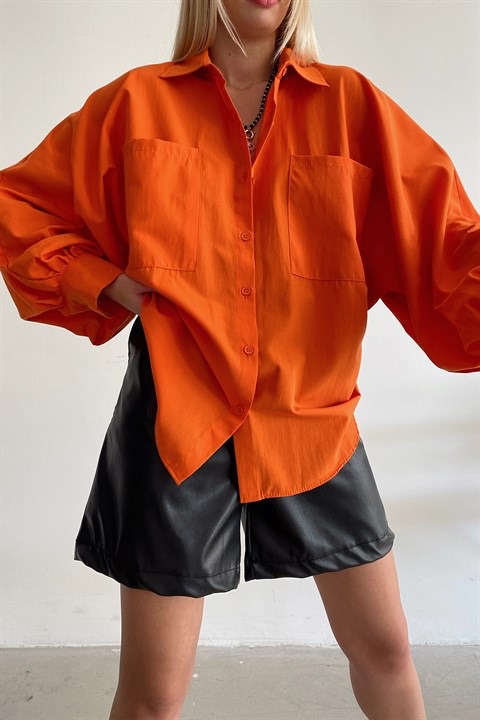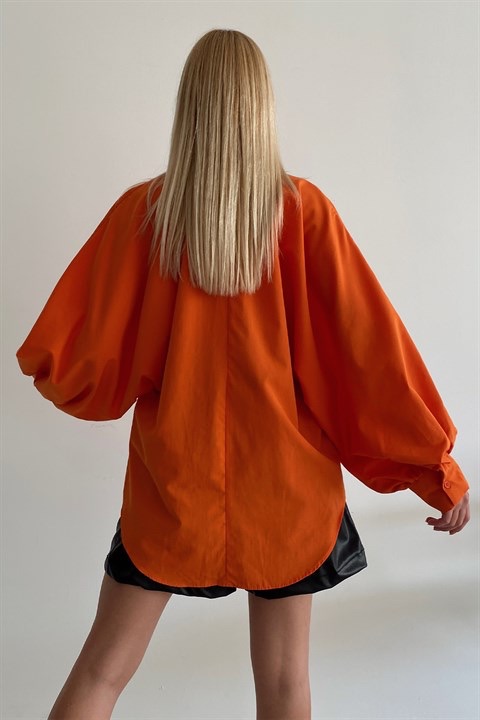 Balon Kol Poplin Kumaş Tarçın Gömlek