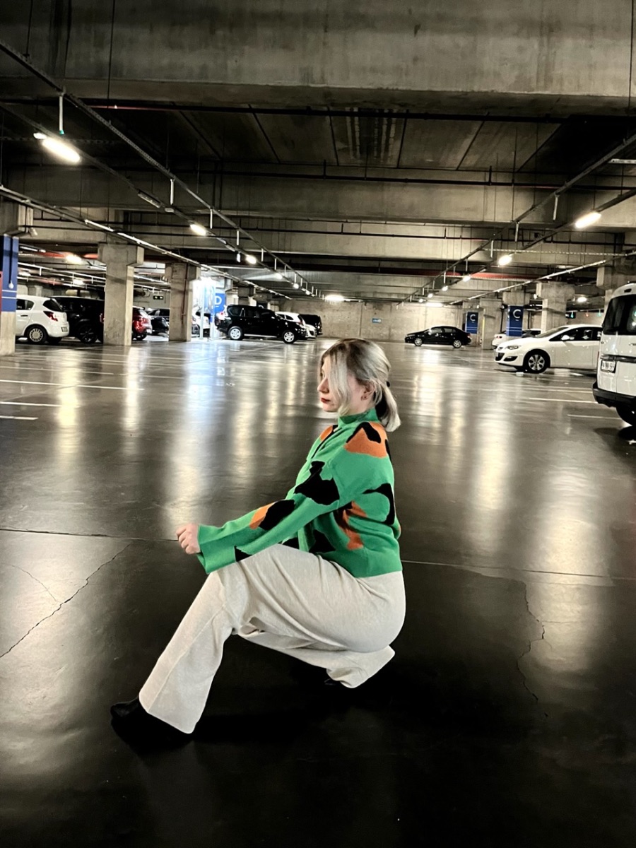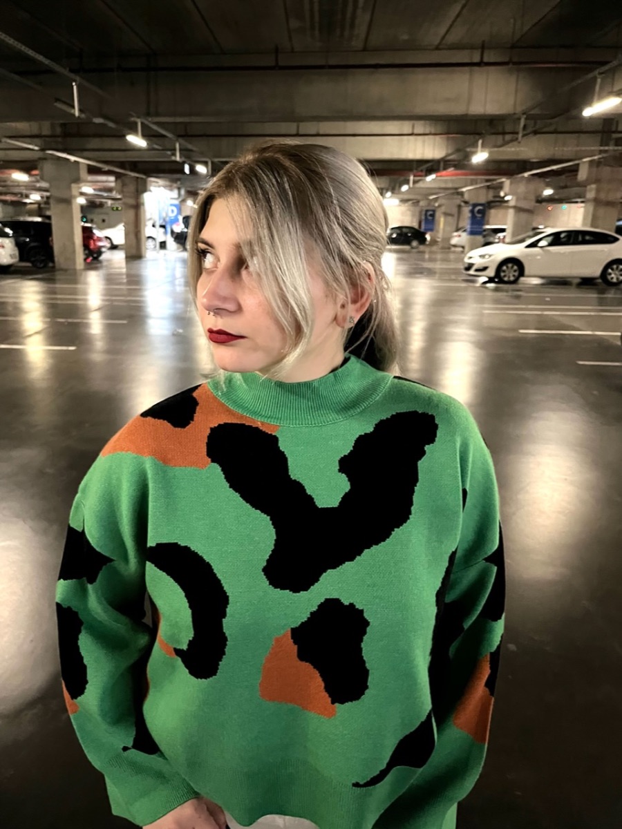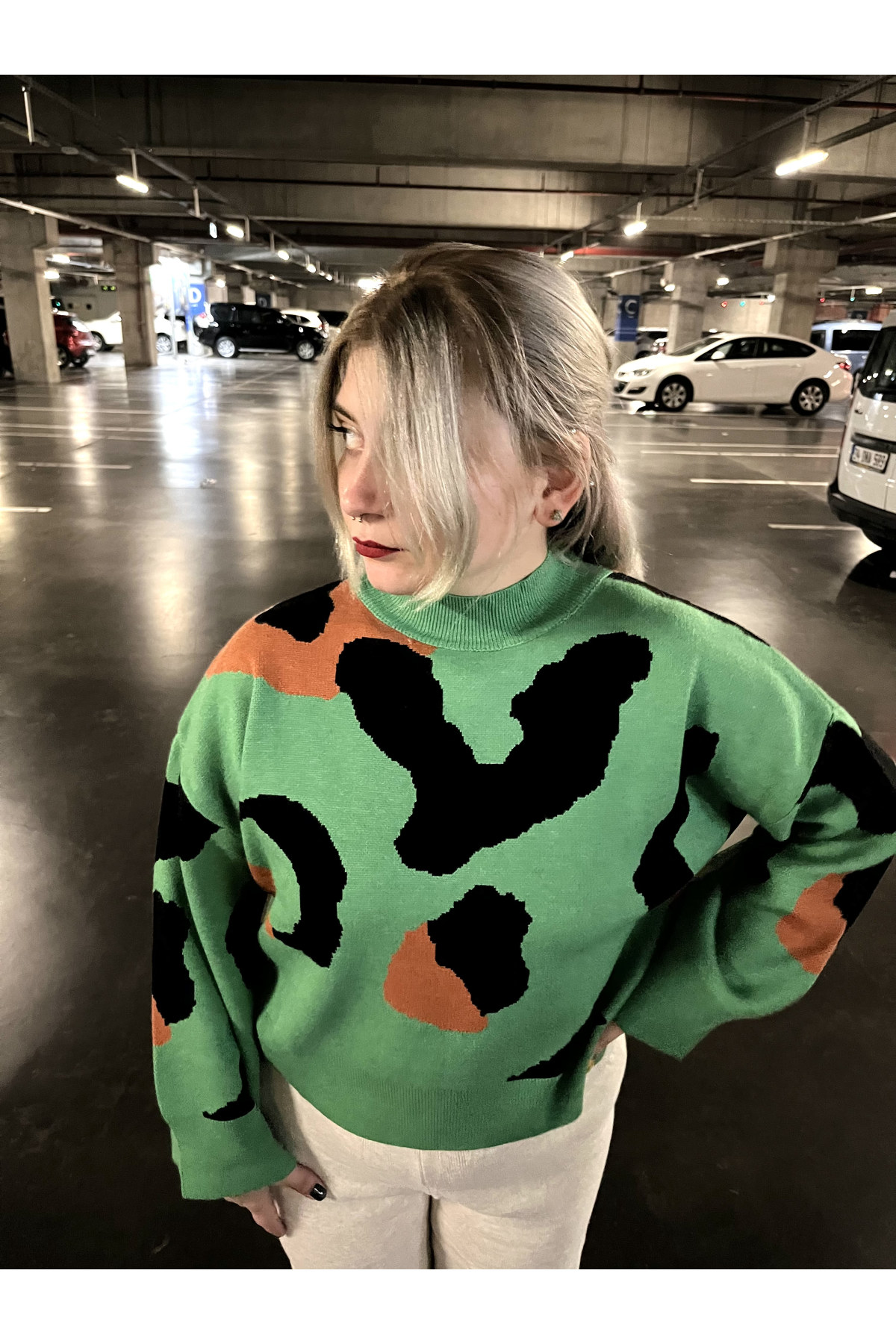 İnek Desen Örme Kazak Yeşil
