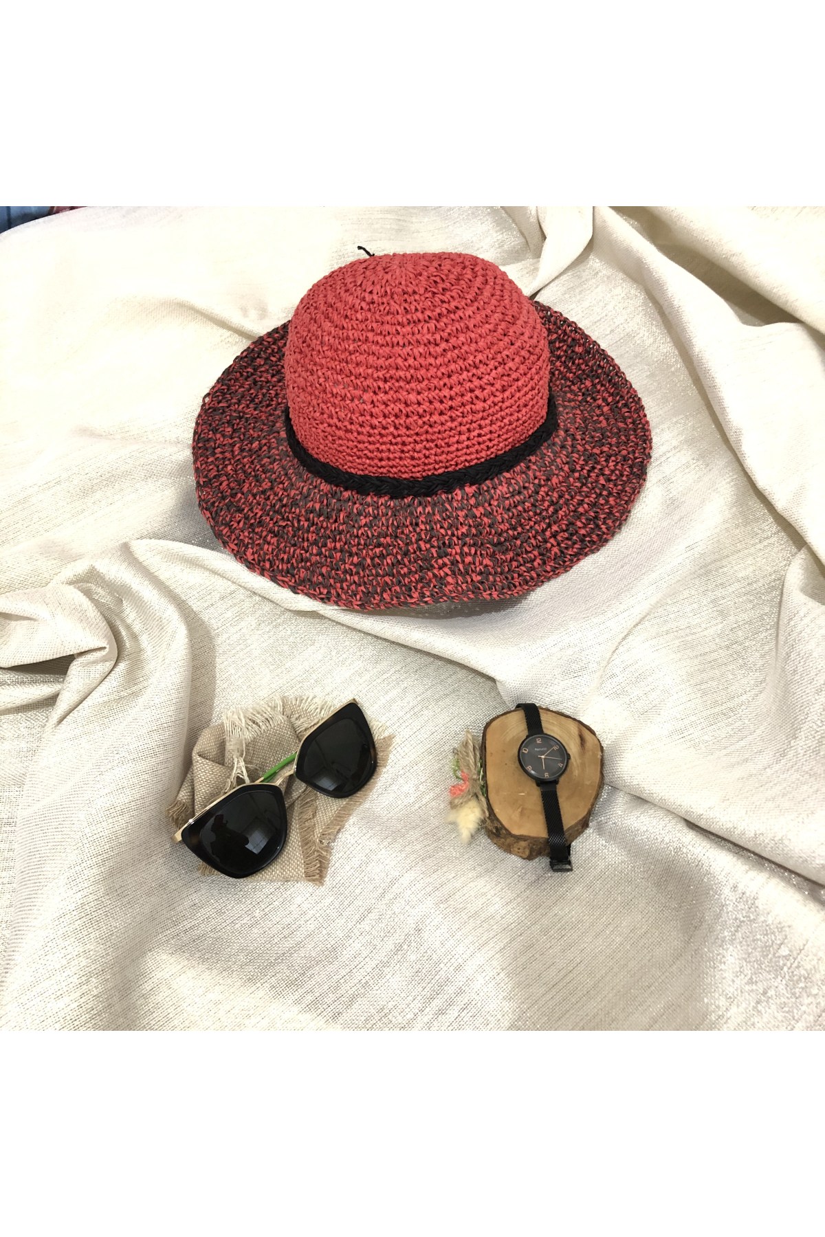 Raffia El Yapımı Hasır Şapka Kırmızı