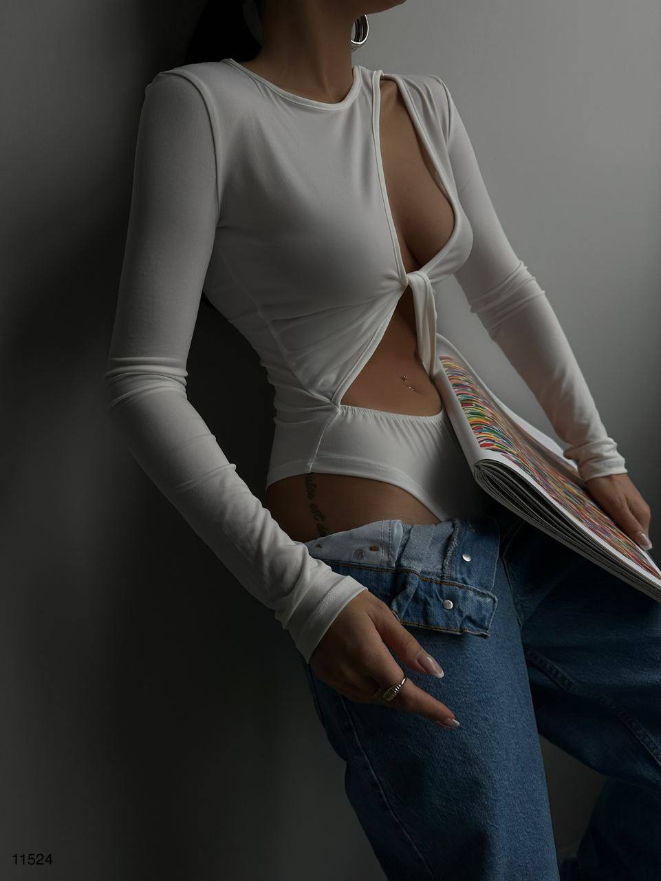 Sandy Kumaş Cut Out Detay Beyaz Bodysuit