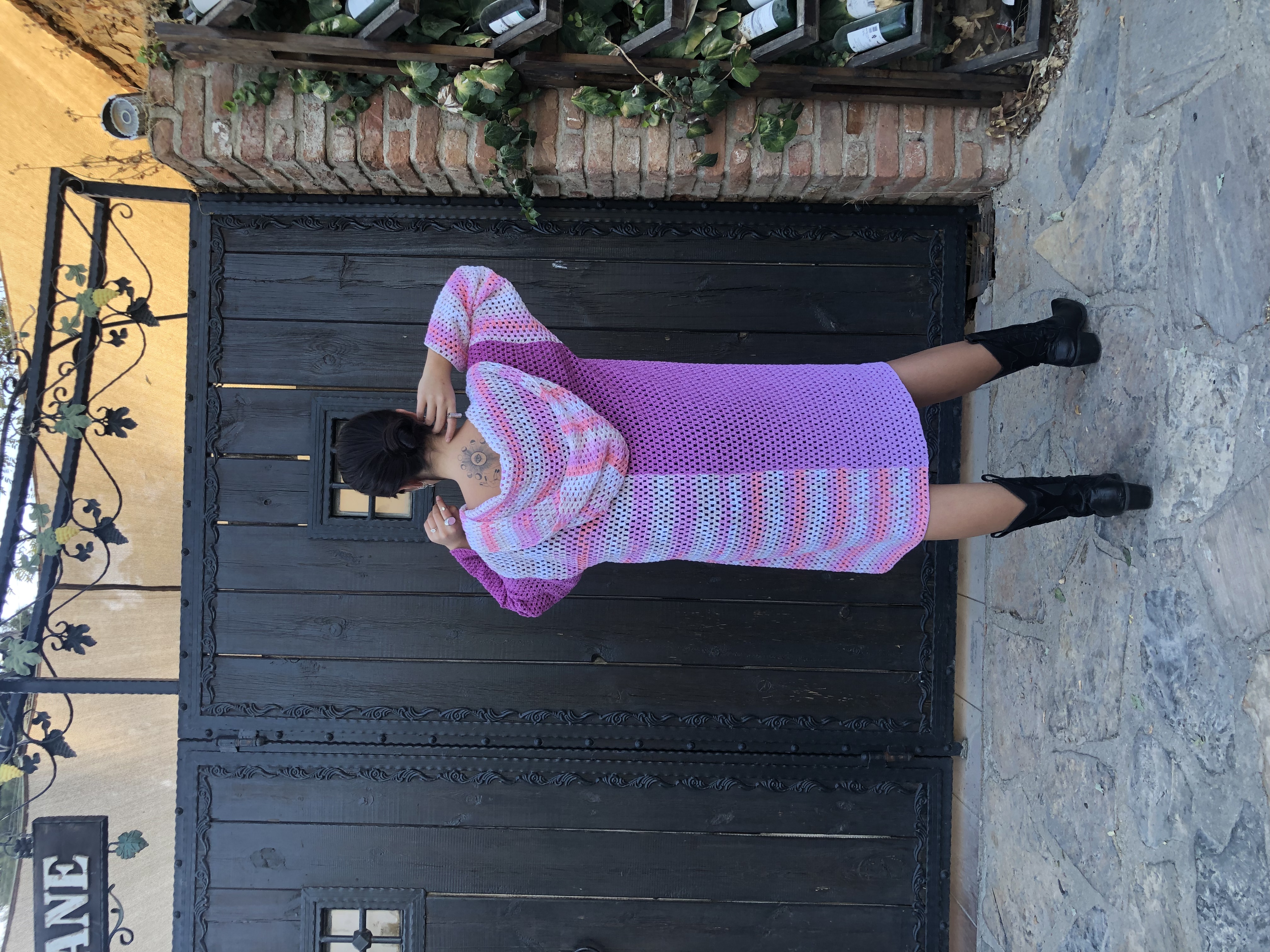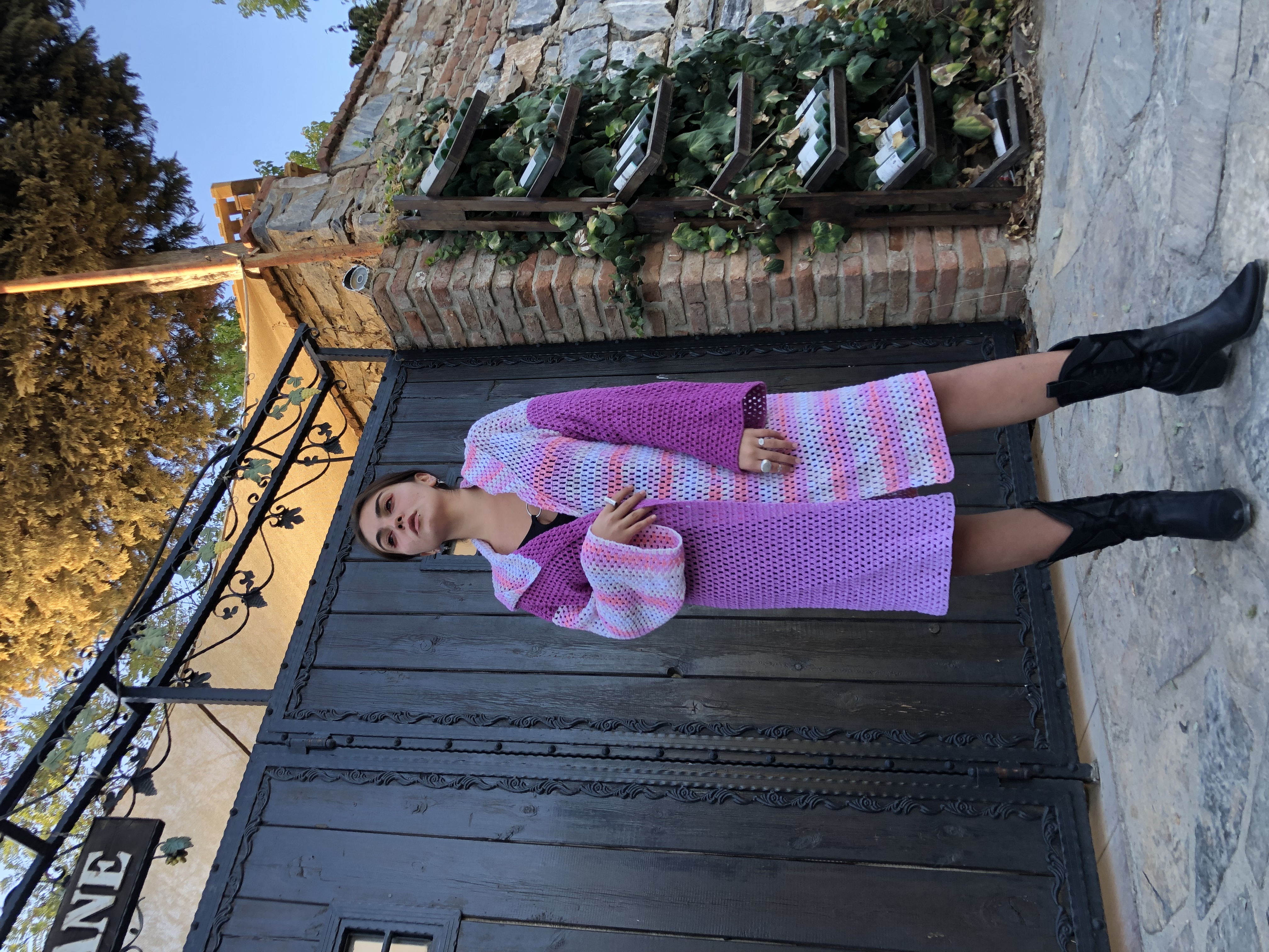 Tasarım El Yapımı Mevsimlik Uzun Hırka Pembe Tonları