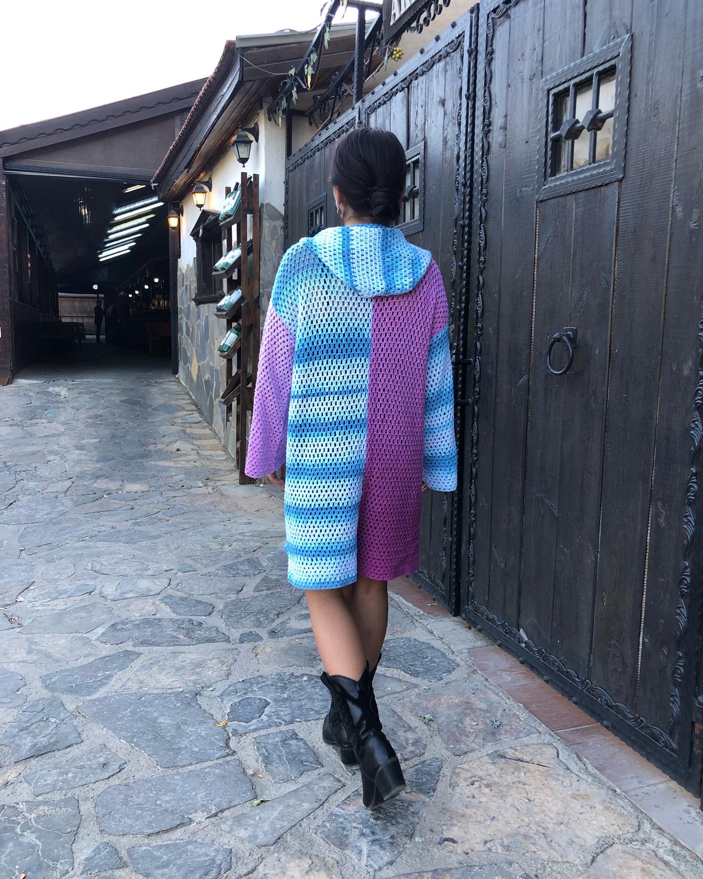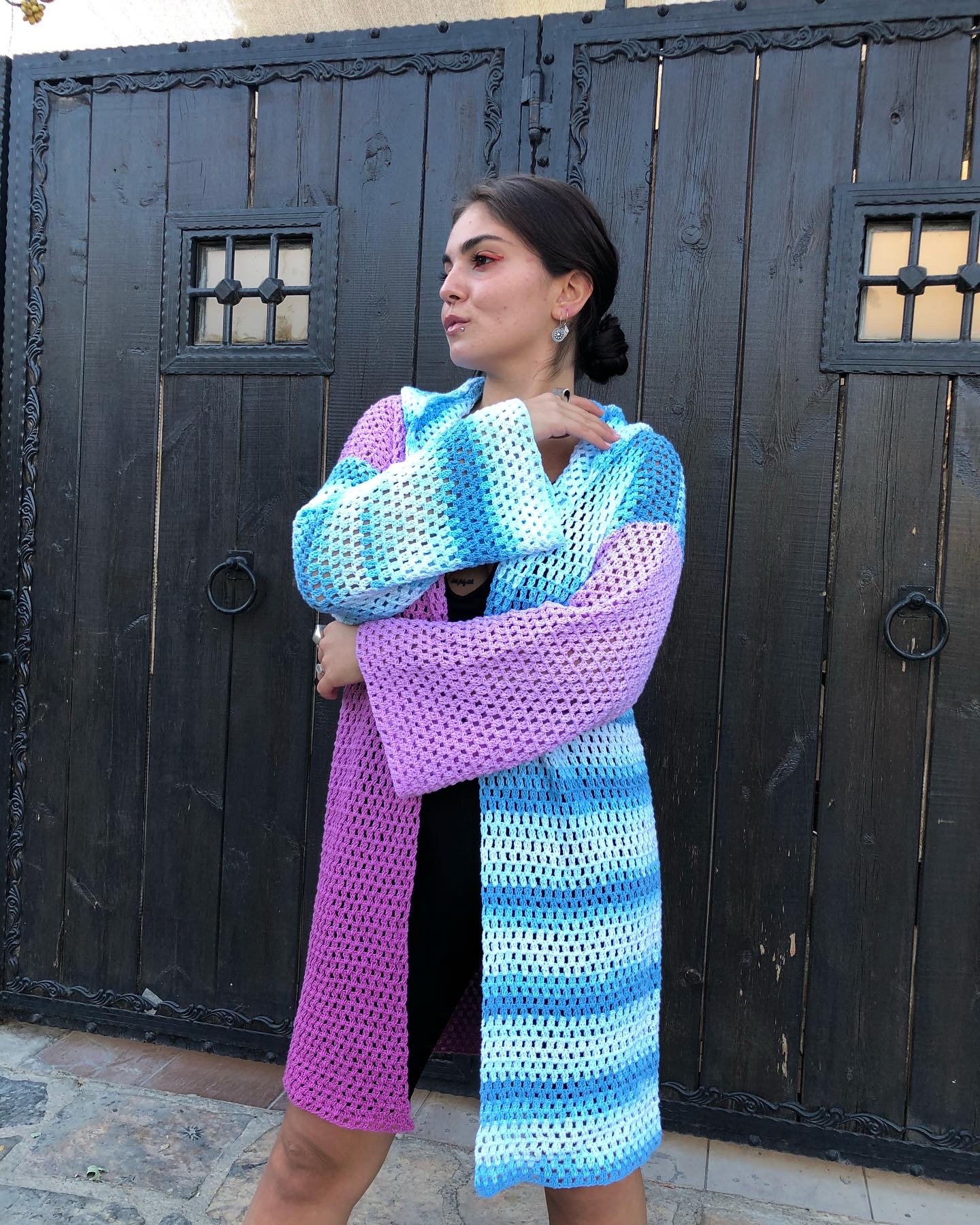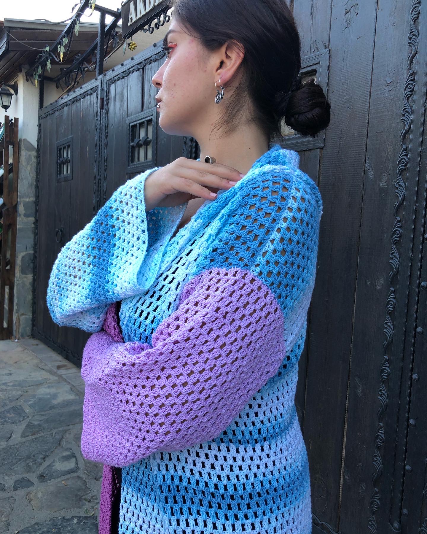 Tasarım El Yapımı Mevsimlik Uzun Hırka Pembe ve Mavi Tonları